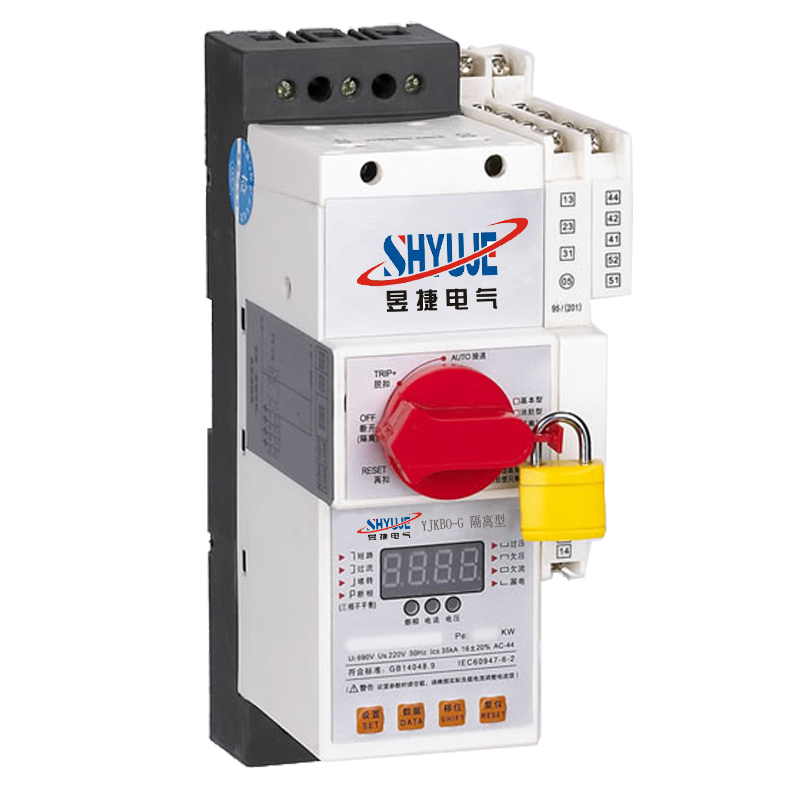 YJKBO-G隔离型产品采用模块化的单一产品结构型式,集成了传统的断路器(熔断器)、接触器、过载(或过流、断相)保护继电器、起动器、隔离器等的主要功能,具有远距离自动控制和就地直接人力控制功能,具有面板指示及机电信号报警功能,具有过压欠压保护功能,具有断相缺相保护功能,具有协调配合的时间-电流保护特性(具有反时限、定时限和瞬时三段保护特性)。根据需要选配功能模块或附件,即可实现对各类电动机负载、配电负载的控制与保护。